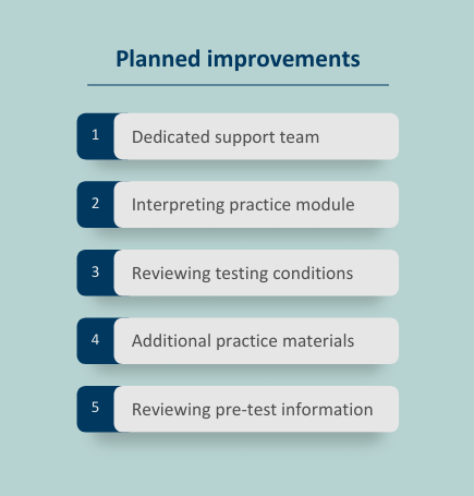 Some specific actions we have taken or are working on to improve Certified Provisional Interpreter, Certified Interpreter and Certified Translator tests include:
