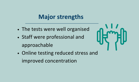 NAATI has launched a Continuous Improvement Program to refine the Certification System, consulting stakeholders and reviewing the results of the candidate survey. We are looking at ways to further support candidates prior to their test session and to enhance their experience during the test.