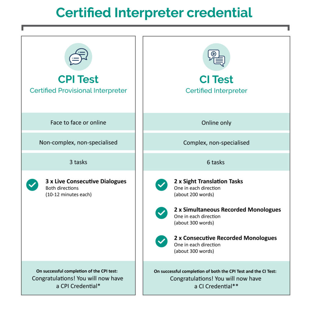 If you meet the prerequisite requirements, NAATI will make you eligible to sit both the Certified Provisional Interpreter and Certified Interpreter tests. If you pass both tests, you will be granted a Certified Interpreter credential.
