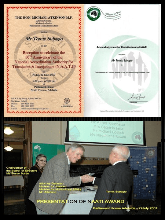 He currently holds credentials as a Certified Interpreter in Indonesian and English and Certified Translator in Indonesian and English (both directions).