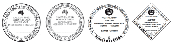 Prior to the start of the Certification System in January 2018, NAATI issued translator stamps under the former accreditation system (see below for examples). These stamps are no longer issued however the translations containing these stamps remain valid indefinitely.